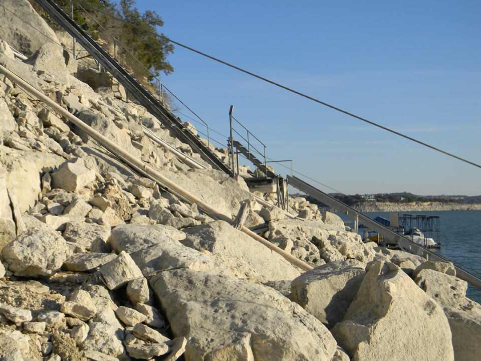 Above: Looking down about 65 to 75 feet above lake level